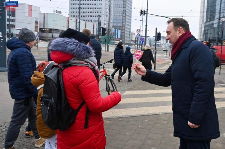 "Dzisiaj fajne, radosne święto - Walentynki. Ludzie się kochają, mamy nadzieję, że kochają się każdego dnia, ale dzisiaj w sposób szczególny jest emanacja tej miłości i dzisiaj Lewica, Nowa Lewica, Partia Razem też umilają łodzianom życie. Rozdajemy lizaki, rozdajemy krówki, ale przy okazji Walentynek chcemy też powiedzieć o jednym, bardzo ważnym problemie, z którym borykają się głównie młodzi obywatele naszego kraju. To jest brak dostępności własnego mieszkania. To jest ta zmora, która trapi Polskę od kilkudziesięciu lat, z którą żaden rząd nie był w stanie sobie poradzić. Młodzi ludzie często mieszkają z rodzicami, brakuje w Polsce dwóch milionów mieszkań. Wynajem mieszkania to dobro luksusowe, a wzięcie kredytu, w tych czasach, to zarobki na poziomie 10-15 tys. zł, żeby w ogóle myśleć o jakimkolwiek kredycie na jakiekolwiek mieszkanie. My jako Lewica zawsze uważaliśmy, że mieszkanie jest prawem, a nie towarem i mówimy to bardzo wyraźnie i bardzo jednoznacznie" - podkreślał poseł Tomasz Trela.